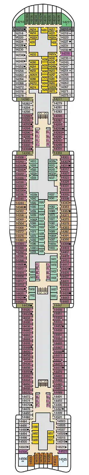 The best way to enjoy the relaxing, invigorating Cloud 9 Spa while on a cruise is in a spa stateroom, and this one fits the bill, providing comfy accommodations and convenient, priority access to treatments and services at the Cloud 9 Spa. (Note that rooms of this type have obstructed views.)
