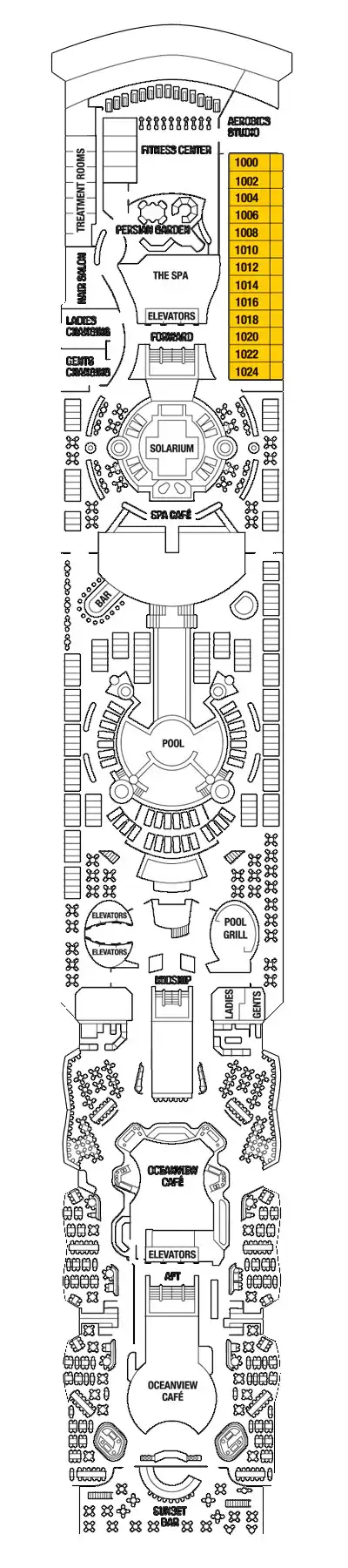 Spacious staterooms located in the aft of the ship, each with its own extra-large private veranda to enjoy the beautiful sunsets. Ultra Deluxe Veranda Staterooms have the largest veranda of any Millennium Series stateroom offering superb ocean views at the stern of the ship.